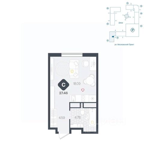 Студия в Октябрьском на Туре. Особенности планировки: предчистовая отделка, тёплая лоджия. квартиры в нашей базе: КО-07.1-2-2.16.3. Район Проект расположен на берегу реки, в одном из самых живописных и экологичных районов Тюмени. За последние годы облик района изменился. По соседству с индивидуальной застройкой выросли многоквартирные дома. При проектировании "Октябрьского на Туре" нашей приоритетной задачей стало сохранение природного ландшафта: мы постарались деликатно вписать в него современную архитектуру. Квартал удачно расположен с точки зрения дорожной инфраструктуры. На автомобиле путь до центра города составит 15 минут. Добраться до набережной и главных тюменских достопримечательностей можно и на общественном транспорте. В пешей доступности находится автобусная остановка. Проект По мастер-плану здесь будет восемь домов. Ядро застройки составляют замкнутые кварталы переменной этажности. Их высотность понижается по мере приближения к реке. На углах участка мы разместили башни-доминанты. Одной из достопримечательностей квартала станет парк на Туре — здесь появится зеленая зона протяженностью около 6 километров для пеших и велопрогулок. Смысловая ось квартала — широкая главная улица с высаженными вдоль неё высокими деревьями. Они создают тень и работают как шумо- и пылезащитные экраны. Это место сосредоточения основных пешеходных и транспортных потоков, на сторону которых мы ориентировали большинство коммерческих помещений. Отсюда жители могут свернуть на тихие соседские улицы и попасть на внутриквартальную площадь — ещё одну точку притяжения. #ZIwaVd