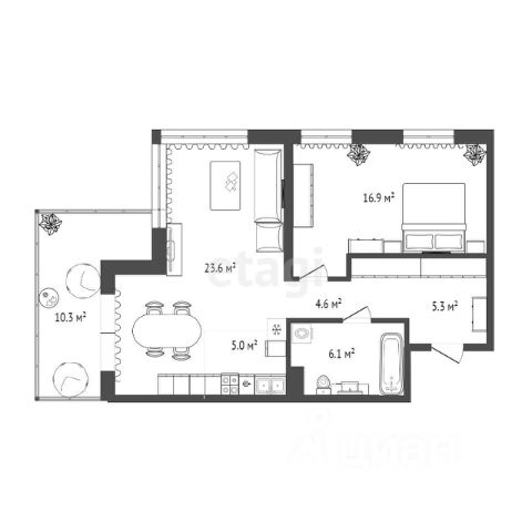 Наша - одна из таких квартир! Евротрешка площадью 61.5 м², расположенная на 20м этаже, где центр города виден, но не мешает, а вид из окна — вдохновляет.