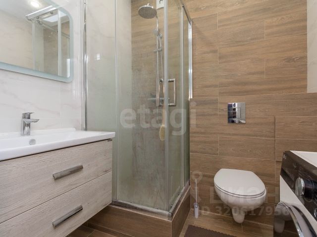 В квартире комнаты и кухня правильной формы, изолированы друг от друга, хорошей площади (17, 12 и 14 м2). Выполнен качественный ремонт. Заменена электрика и стяжка пола от застройщика, отсутствуют натяжные потолки. Стены и потолок выравнены, белого цвета. Полы массив дерева, инженерная доска (толщина доски 3.5 см), покрыты маслом, за счет этого дерево дышит, сохранена текстура и запах леса. Межкомнатные двери из массива сосны, покрыты маслом, межкомнатные замки магнитные. Из кухни выход на балкон с витражным остеклением. Балкон обшит вагонкой, на полу керамогранит, есть освещение. Ванная комната оформлена в стиле весна, цветущая сирень, большая чугунная ванна и объемная раковина, на полу керамогранит. Туалет оформлен в стиле Древняя Греция, дополнен раковиной. Сантехника германская. Входная дверь в квартиру стальная, фирмы Berserker.