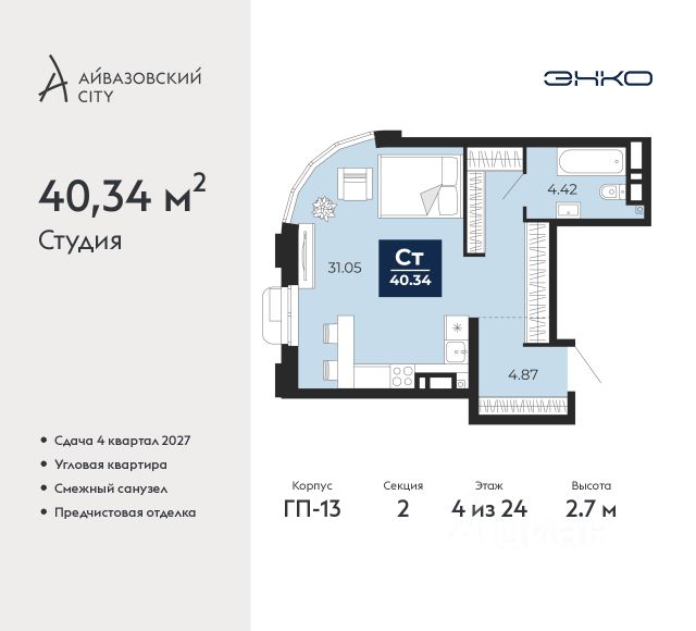 Продается 1-комн. студия с предчистовой отделкой в ЖК "Зарека" на 4 этаже. Общая площадь: 39.01 кв.м. Высота потолков 2.7 м. Дом монолитный, многоподъездный, переменной этажности, от 8 до 16 этажей. Квартира находится в 5-й секции высотой 16 этажей в корпусе 2-1. На этаже 6 квартир. В подъезде 1 пассажирский и 1 грузовой лифт. Окончание строительства - 2 квартал 2029 года. Оформление сделки по договору долевого участия. Студия в жилом районе "Зарека". Особенности планировки: гардеробная, предчистовая отделка. О доме Замкнутый квартал высотой 8 этажей с 16-ти этажной башней-доминантой и двором на стилобате двухуровневого паркинга. Дом 2.1 сочетает в себе приемы классической и современной архитектуры. Выразительность достигается благодаря симметричной композиции фасада, чередование массинга идет за счет эркеров и подрезок. Фасады первых этажей выполнены из клинкерного кирпича, выше - штукатурные. Акцентом на фасаде являются металлические импосты окон, темно-серого цвета, который будет контрастировать со светлыми оттенками самого фасада. квартиры в нашей базе: ЗРК02.1-Ж5.4.2. Проект На планировочную структуру "Зареки" повлияла близость к автомобильному мосту Челюскинцев. Мы расположили жилые здания так, чтобы они постепенно удалялись от проезжей части. Приём напоминает лесенку: чем сильнее мост возвышается над участком застройки, тем дальше по отношению к нему стоят дома. Этот ступенчатый сдвиг позволил нам сформировать буфер между кварталами и оживлённой магистралью. Мы намерены высадить здесь высокие деревья и создать дополнительную защиту от дорожных шума и пыли. В границах нашего участка мы намерены разместить школу и два встроенных детских сада на 135 и 150 мест. Общественные пространства С севера на юг территорию будет пронизывать пешеходный бульвар. Мы мыслим это общественное пространство как главный центр притяжения. На нём будут сосредоточены основные детские игровые и спортивные зоны, места для встреч и спокойного отдыха. Он также сыграет роль мостика, ведущего к другим нашим проектам — "Европейскому кварталу" и "Дому у озера". Одна из базовых идей мастер-плана касается береговой линии. Сегодня озеленение этой территории носит стихииныи характер, а прямому доступу к Туре препятствует дамба. Мы хотим благоустроить пространства у воды и открыть их для людей. Архитекторы спроектировали систему многоярусных троп и спусков к реке, смотровые площадки и места для активного отдыха и пикников. #Z6E52u