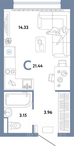 Однокомнатная квартира с предчистовой отделкой в ЖК "Мотивы" на 12 этаже. Общая площадь: 37.79 кв.м., жилая: 12.44 кв.м., площадь просторной кухни-столовой: 14.71 кв.м. Все окна выходят на одну сторону. В квартире одна лоджия, один совмещенный санузел. Высота потолков 2.7 м.