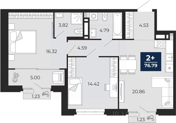 Продается 2-комн. квартира в ЖК "Айвазовский" на 5 этаже. Общая площадь: 76.79 кв.м. Высота потолков 2.7 м. Дом монолитный, многоподъездный, высотой 24 этажа. Квартира находится в 4-й секции в корпусе ГП-12. На этаже 5 квартир. В подъезде 1 пассажирский и 1 грузовой лифт. Окончание строительства - 4 квартал 2028 года. Оформление сделки по договору долевого участия. Новый жилой район располагается в живописном месте на берегу Туры в центральной части города. Принципиально новое пространство для жизни в центре современного города для тех, чьи мечты сбываются, кто нацелен на постоянный рост, перемены к лучшему для себя и своих близких. Каждая деталь ЖК "Айвазовский" вдохновляет и заряжает на новые свершения: авторская архитектура, сбалансированная продуманная инфраструктура, дизайнерские дворы со спортивными и детскими площадками, парковые зоны с фонтанами, водный канал, украшающий центральный прогулочный маршрут района и многое другое. В 2019 года проект стал лауреатом престижной премии Urban Awards 2019 в номинации "Лучший строящийся региональный жилой комплекс бизнес-класса". Главная особенность Айвазовский - соседство разных архитектурных школ в рамках одного дома. Изысканная классика, выразительная эклектика и оригинальный модерн - жить в одном из таких домов настоящий повод для гордости. Айвазовский это идеальное сочетание комфорта, технологий и развитой инфраструктуры. Вход в подъезд возможен с улицы и со двора. Отправляясь на работу или за покупками, жители могут выйти с внешней стороны дома, а для прогулки с ребенком со стороны двора. Экологически чистые материалы и энергосберегающие технологии, качественное освещение общественных зон, видеонаблюдение по всей территории жилого района (в том числе в подъездах, лифтах и в подземном паркинге), закрытые дворы с доступом только для жителей Айвазовский. Часть домов в Айвазовский будут оснащены подземным паркингом. Востребованный в нашем климатическом поясе формат хранения автомобилей защитит собственность владельца в любое время года. Аккредитация в банках: ОАО "Альфа-Банк", "Сбербанк России", ПАО "Газпромбанк", ПАО Банк "ВТБ", ПАО "Промсвязьбанк" и других. #zmelCI
