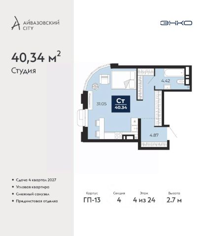 Продаётся квартира площадью 24.6 м2 в жилом комплексе "Айрис". Квартира находится на 4 этаже, жилая площадь квартиры 10.2 м2, площадь кухни-ниши — 5.9 м2 Срок сдачи — III кв. 2027 "Айрис" — Смарт-квартал для активной и комфортной жизни "Айрис" расположен в новом экологически чистом районе Комарово Парк — локации без промышленного прошлого,в окружении трёх зелёных парков, до которых можно дойти за 10 минут. Здесь свежий воздух, природа и тишина сочетаются с городским комфортом. Рядом вся ключевая инфраструктура: ТРЦ "Колумб" и "Кристалл", Гимназия 4, Академия спорта, детские сады 60 и 95. Смарт-архитектура обеспечивает хорошие виды и естественное освещение. Разновысотная застройка формирует ощущение открытого пространства, а панорамные окна наполняют квартиры светом. Дворы без машин — безопасные игровые и спортивные зоны, зелёные пространства, места для отдыха и спорта. Большой выбор планировок — от студий до трёхкомнатных квартир, а также редкие форматы: террасы, зимние сады и сити-хаусы. Дополнительные удобства — кладовые на этажах, лаундж-парадные, два наземных паркинга. Продуманная транспортная доступность Благодаря продуманной транспортной доступности "Айрис" одинаково удобен и для автомобилистов, и для тех, кто пользуется общественным транспортом. Район остаётся тихим, при этом сохраняется связь с основными направлениями города: • 2025 минут до центра Тюмени • 67 минут до объездной дороги • 5 минут до Московского тракта Смарт-пространство для жизни без компромиссов "Айрис" предлагает продуманные пространства, которые поддерживают комфортный и активный образ жизни. На крышах паркингов размещены лайфстайл-зоны: площадки для тренировок, кинотеатр под открытым небом, зелёные террасы для йоги и отдыха — всё, что нужно для активной городской жизни рядом с домом. Максимум света и воздуха в каждой квартире Пространственные решения усиливают ощущение простора: • панорамные окна высотой 1,652,4 м; • витражные балконы и лоджии, расширяющие визуальные границы; • потолки от 2,72 м на типовых этажах до 4,62 м на первом. Многофункциональные крыши паркингов: новый уровень городской инфраструктуры Жители "Айрис" могут заниматься спортом, отдыхать и встречаться на свежем воздухе. — прямо на крышах паркингов. Здесь расположены: • воркаут-зона с тренажёрами и цифровыми программами тренировок — поддерживать форму можно рядом с домом; • кинотеатр под открытым небом, который летом становится центром вечерней жизни квартала; • зелёные террасы — тихие места для отдыха, чтения и встреч; • йога-терраса, где удобнее всего заниматься на рассвете и закате.