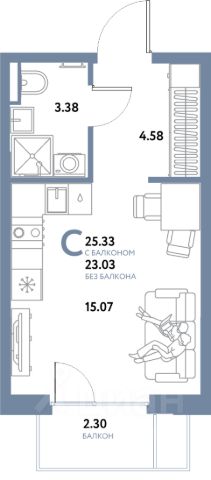 Уютная студия с лоджией, сдается в предчистовой отделке в микрорайоне Чемпионский. Чемпионский микрорайон комплексного развития территории для комфортной и активной жизни. Монолитные дома переменной этажности от 15 до 25 этажей где каждая квартира наполнена светом, а из окна открываются завораживающие виды на заливные луга или на набережную реки Тура. Дом разделен на 4 секции, в которых предусмотрено от 2 до 3 грузопассажирских лифта. Окончание строительства - 2 квартал 2028 года. Архитектура Фасады выполнены в мягких, пастельных оттенках, подчеркивающих гармонию с окружающей средой. Для отделки использовали комбинацию гладких и фактурных штукатурок. Отдельного внимания заслуживают летние пространства: просторные балконы и уютные террасы украшают внешний облик зданий, придавая каждой постройке неповторимый характер. Подсветка фасада создает уютную атмосферу во время вечернего променада. Благоустройство Благоустройство выполнено по ландшафтному дизайну. Предусмотрено разноуровневое озеленение территории. Используется посадочный материал из местных питомников, адаптированный под климатические условия. По периметру здания благоустройство выполнено на уровне земли, имеются проезды и стоянки для автомобилей, пешеходные и велосипедные дорожки, зоны для отдыха. Безбарьерный вход в дизайнерские парадные, с теплым тамбуром и мягкими зонами ожидания. В закрытом дворе размещены детские спортивные площадки, скейтпарк, баскетбольная площадка, а также зоны отдыха взрослого населения. Здесь вы ощущаете гармонию с окружающим миром, наслаждаясь красотой природы в пределах города. Инфраструктура В шаговой доступности от жилого комплекса находятся: продуктовые магазины, пункты выдачи интернет-заказов, банкоматы, средняя общеобразовательная школа 38, общественный парк, остановка общественного транспорта.
