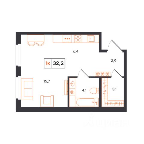 • ✅ Минимальная площадь: 22,6 м²