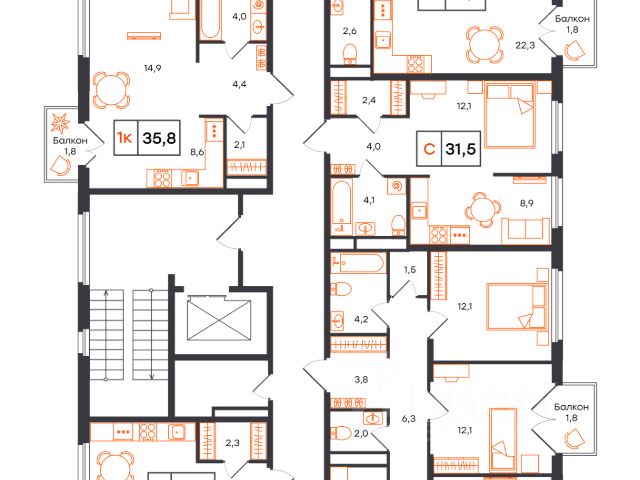 • ✓ В базе Циан 2 квартир-студий на 5 этаже в микрорайоне Дударева в городе Тюмень