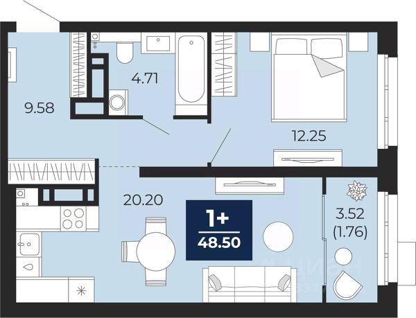 Однокомнатная квартира с предчистовой отделкой в ЖК "Мотивы" на 14 этаже. Общая площадь: 39.9 кв.м., жилая: 13.21 кв.м., площадь просторной кухни-столовой: 13.67 кв.м. Все окна выходят на одну сторону. В квартире один совмещенный санузел. Высота потолков 2.7 м.