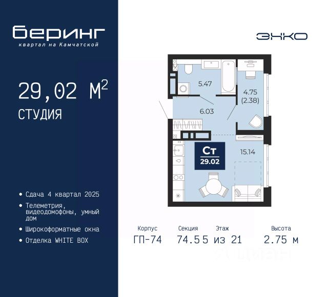 Квартира в рассрочку без процентов от застройщика. Эксклюзивные ипотечные условия. Обмен квартиры на новую. Предложение от застройщика. Дом будет сдан в 4 квартале 2025 года. Квартира в счёт первоначального взноса по программе обмена. Звоните, наши менеджеры вам все расскажут! Продается однокомнатная студия от застройщика с предчистовой отделкой в ЖК "Республики 205" на 5 этаже. Общая площадь: 19.82 кв.м., площадь гостиной 10.1 кв.м., из которых 5 кв.м. выделено под кухонную зону. Все окна выходят на одну сторону. В квартире один балкон, один совмещенный санузел. Высота потолков 2.6 м. Купить квартиру можно с помощью программ покупки от застройщика Брусника: - ипотека по эксклюзивной ставке с помощью в получении положительного кредитного решения через сервис ипотечный брокер; - квартиры в рассрочку без процентов от застройщика Брусника; - обмен квартиры на новую. Получить одобрение ипотеки или рассрочку, а также осуществить обмен квартир можно онлайн. Дом монолитный, многоподъездный, переменной этажности, от 9 до 17 этажей. Квартира находится в 7-й секции высотой 9 этажей в корпусе 1. На этаже 6 квартир. В подъезде 1 грузовой лифт. Начало строительства - 2 квартал 2023 года. Окончание строительства - 4 квартал 2025 года. Оформление сделки по договору долевого участия. Район Проект расположен в границах улиц Пермякова, Энергетиков, Воровского и Республики. До центра города — 10 минут на машине. Рядом — автомобильная развязка на пересечении улиц Пермякова и Республики. В шаговой доступности есть школы, детские сады, поликлиники, крупный торговый центр, автовокзал и несколько скверов. Проект "Республики 205" — это проект комплексного развития территории, уникальный по своему наполнению. Переосмысляя бывшую территорию завода медицинского оборудования, мы создадим новое место силы — микрорайон, насыщенный деловой, развлекательной, рекреационной, игровой, образовательной и медицинской инфраструктурой. До каждого полезного сервиса здесь можно будет дойти за 15 минут. Локальными центрами "Республики 205" будут общественные пространства — скверы, парки, бульвары и площади. В границах нашего участка мы намерены разместить школу, рассчитанную на 1550 учеников, два детских сада на 300 мест и встроенный детский сад на 100 мест. В одном из цехов бывшего завода расположится креативный кластер "Кузница". Он станет площадкой для нескольких институций — галереи, лектория, книжного магазина-библиотеки, кинобара и точек креативного pop-up-ритейла. Пешеходные бульвары внутри района соединят между собой улицу ресторанов, детские и спортивные площадки, событийную площадь и летний кинотеатр. Идентификатор квартиры по базе застройщика: МЕД01-01-7-7. #247dEZ