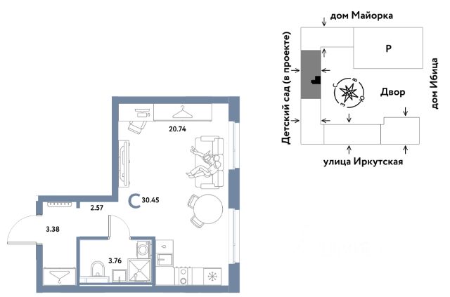 Новая квартира в ЖК "Остров-сад" напрямую от федеральной группы компаний "Страна Девелопмент". Финансовый партнер — Сбербанк России. Продается 1комнатная квартира на 6 этаже от застройщика Страна Девелопмент. Площадь квартиры 23,32 кв. м. ЖК "ОСТРОВ-САД" Жилой комплекс ЖК "Остров-сад" — новый квартал в районе ДОК в Тюмени недалеко от центра. Внутри ЖК планируется несколько школ и детсадов, торговая галерея, своя набережная, закрытые дворы-сады, несколько подземных и многоуровневых паркингов и пешеходный бульвар. Архитектура комплекса отсылает к истории ДОКа — отделка из красного кирпича, акцентные цвета штукатурки и необычная ступенчатая форма зданий. Всё для комфортной жизни на своём "острове" рядом с центром Тюмени. ПРЕИМУЩЕСТВА Квартиры с готовым ремонтом, возможность приобрести квартиру с кухонным гарнитуром и техникой. Развитое жилое пространство — закрытые дворы-сады, свои набережная и бульвар, торговая галерея на 1-м этаже, рядом детсады, школы и поликлиника. Служба охраны и видеонаблюдение в доме и во дворе 24/7. Несколько многоуровневых и подземных паркингов с охраной. ОТДЕЛКА Необходимые работы уже выполнены: подведены холодная, горячая вода и электричество, установлены батареи. В квартире не проводились отделочные работы: не выровнены стены и пол. ДИЗАЙНЕРСКАЯ ОТДЕЛКА В ЖК "Остров-сад" есть квартиры с готовым ремонтом. Пять вариантов на выбор в разных цветовых решениях. В ремонт также включены светильники, межкомнатные двери и даже кондиционер. Можно выбрать отдельно ремонт в ванной, для вас 4 стильных варианта с сантехникой. СПОСОБЫ ПОКУПКИ Сотрудники "Страна Девелопмент" будут сопровождать вас на каждом этапе сделки, помогут получить одобрение по ипотеке или снизить ежемесячный платеж. - ипотека - материнский капитал - 100% оплата наличными