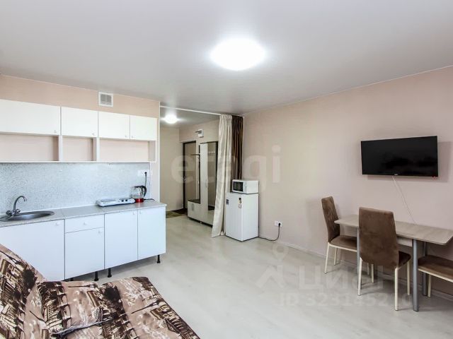 Продается 1-комн. студия с предчистовой отделкой в ЖК "Республики 205" на 6 этаже. Общая площадь: 19.82 кв.м., площадь гостиной 10.1 кв.м., из которых 5 кв.м. выделено под кухонную зону. Все окна выходят на одну сторону. В квартире один балкон, один совмещенный санузел. Высота потолков 2.6 м.