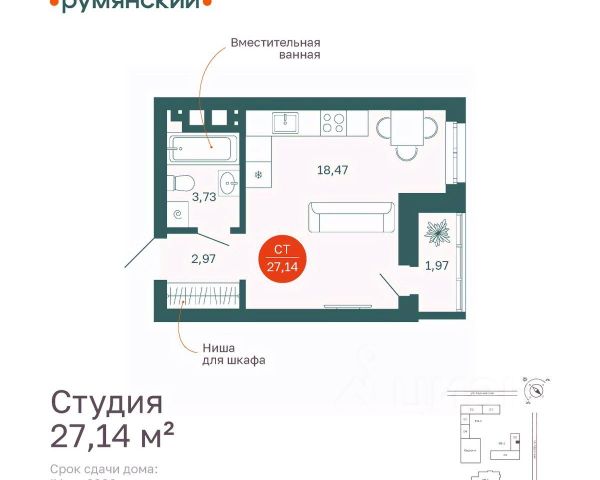 Дом монолитный, многоподъездный, переменной этажности, от 7 до 16 этажей. Квартира находится в 3-й секции высотой 7 этажей в корпусе 1. На этаже 5 квартир. В подъезде 1 грузовой лифт. Окончание строительства - 4 квартал 2026 года. Оформление сделки по договору долевого участия.