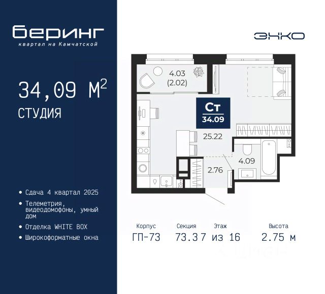 Студия с увеличенным окном — оно шире на 16%, чтобы впустить в квартиру больше света. Для одежды в прихожей ниша под шкафы. В квартире предчистовая отделка: стены оштукатурены и выровнены по общему уровню, на полу слой цементно-песчаного раствора с дополнительным гидроизоляционным слоем в ванной. Проведена электрика и готовы розетки с выключателями. А ещё установлены сейф-двери и счётчики с телеметрией. Это не чистовая отделка, но во время ремонта будет меньше пыли. Вокруг много школ и детских садов, есть качественные клиники и большой парк для прогулок. Детские и спортивные площадки в закрытых дворах. Для машин продуман крытый паркинг для автомобилей. Он в 6 минутах ходьбы. Способы покупки: — ипотечные программы — обмен вашего жилья на новую квартиру — дистанционная покупка Узнать дополнительную информацию и записаться на встречу в офисе продаж можно по номеру, указанному в объявлении.