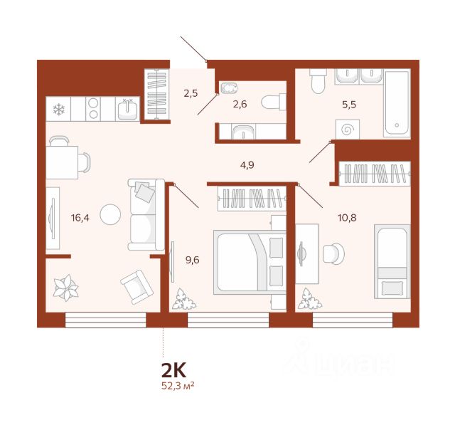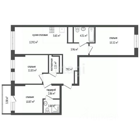 3-комн. квартира с предчистовой отделкой в ЖК "Республики 205" на 2 этаже. Общая площадь: 87.88 кв.м., жилая: 32.6 кв.м., площадь просторной кухни-гостиной: 22.4 кв.м. Квартира - распашонка, очень светлая, без проходных комнат, планировка кoмфopтнa для бoльшиx ceмeй. В квартире три балкона, два совмещенных санузла. Высота потолков 2.7 м.