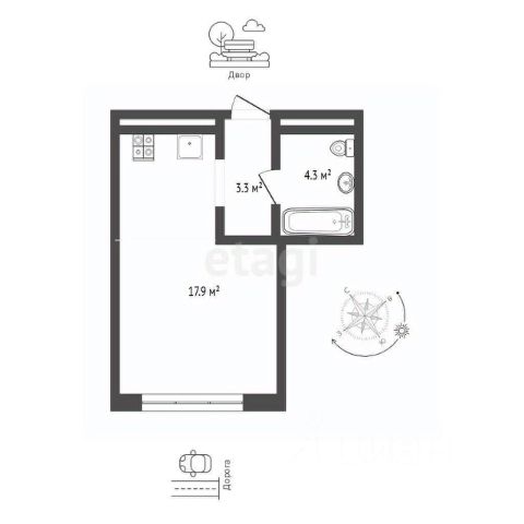 Однокомнатная квартира-студия с предчистовой отделкой в ЖК "Прео" на 5 этаже. Общая площадь: 32.77 кв.м., площадь гостиной 21.92 кв.м., из которых 5 кв.м. выделено под кухонную зону. Все окна выходят на одну сторону. В квартире один совмещенный санузел. Высота потолков 2.7 м.