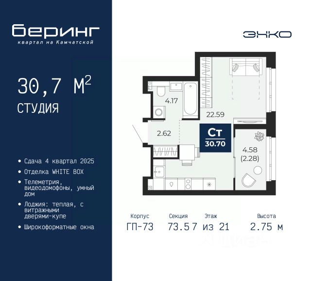 Дом монолитный, черырехподъездный, переменной этажности, от 14 до 21 этажей. Квартира находится в 3-й секции высотой 14 этажей в корпусе 211. На этаже 6 квартир. В подъезде 1 пассажирский и 1 грузовой лифт. Окончание строительства - 4 квартал 2026 года. Оформление сделки по договору долевого участия.