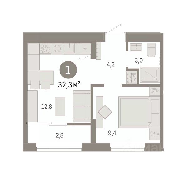 • ✅ Минимальная площадь: 21,4 м²