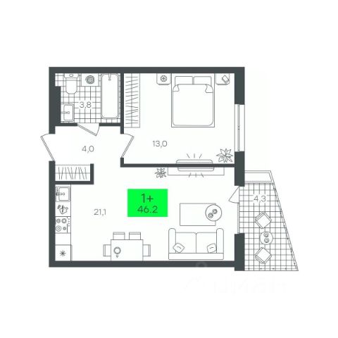 1-комн. квартира от застройщика с предчистовой отделкой в ЖК "Прео" на 1 этаже. Общая площадь: 37.26 кв.м., жилая: 13.49 кв.м., площадь просторной кухни-столовой: 14.43 кв.м. Все окна выходят на одну сторону. В квартире один совмещенный санузел. Высота потолков 2.7 м.