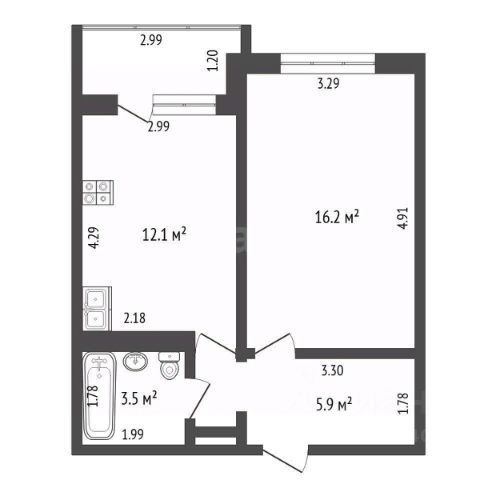 В квартире очень удобная и многофункциональная планировка: большая кухня, которую при желании можно переделать в кухню-гостиную, спальная комната с выходом на застекленный балкон и санузел. Квартира очень светлая, окна выходят на солнечную сторону (во двор, из окон также видно бульвар). Выполнен косметический ремонт. Есть закрытый тамбур на 2 квартиры, где можно оставить обувь и верхнюю одежду.