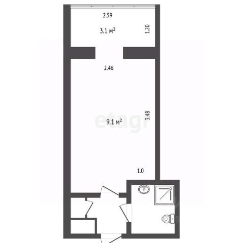 Продается просторная квартира-студия площадью 30,1 м² с балконом!