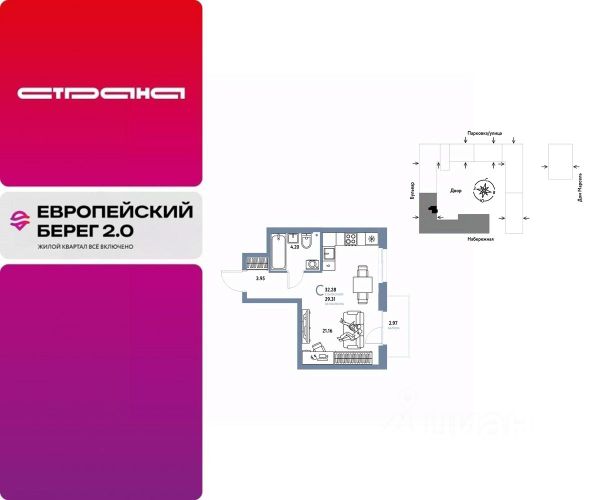 Объявление от застройщика Страна Девелопмент. Покупка квартиры защищена банком. Продается 1комнатная квартира на 8 этаже от застройщика Страна Девелопмент. Площадь квартиры 30,89 кв. м. О ПРOЕКТЕ Европейский берег 2.0. — это продолжение легендарного жилого комплекса Европейский берег. Он включает все, что нужно для жизни, и даже больше. Этот квартал для тех, кто не готов тратить время на ненужное, жертвовать одним ради другого. Для тех, кто хочет получить все и сразу. Именно поэтому генеральная идея проекта — жилой квартал все включено. Все преимущества включены. Никаких исключений. ПРЕИМУЩЕСТВА Разнообразие планировок: от классических до квартир с мастер-спальней и террасами. Подземный паркинг с кладовыми, охраной и видеонаблюдением 24/7. Ремонт от застройщика: 5 вариантов на выбор. Закрытый двор с площадками и зонами отдыха: мост-акведук, тренажёры, лабиринты, гамаки и шезлонги. ОТДЕЛКА Базовая отделка или готовый ремонт от застройщика. В базовой отделке все черновые работы выполнены, подведены коммуникации, стены оштукатурены под маяк. В ремонт от застройщика входит 5 вариантов отделки, уже включено всё необходимое: от сантехники до кондиционера. СПОСОБЫ ПОКУПКИ Сотрудники "Страны Девелопмент" будут сопровождать вас на каждом этапе сделки, помогут получить одобрение по ипотеке или снизить ежемесячный платеж. - ипотека - материнский капитал - 100% оплата наличными - рассрочка - обмен — это выкуп вашей старой квартиры и зачисление полученных денежных средств в счет стоимости новой квартиры или в качестве первоначального взноса по ипотеке.