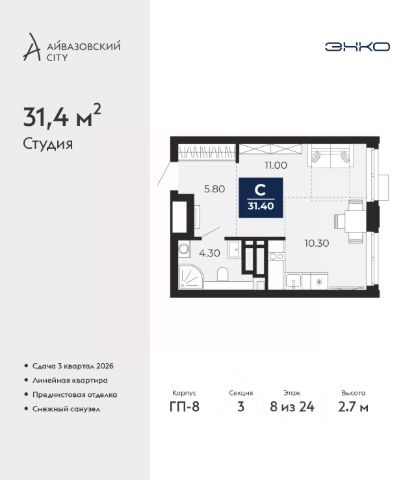 Продаётся квартира площадью 33.2 м2 в жилом комплексе "Дабл-Дабл". Квартира находится на 8 этаже, жилая площадь квартиры 14.1 м2, площадь кухни-ниши — 5.2 м2. Срок сдачи — II кв. 2028 "Дабл-Дабл" - уединенный семейный квартал с всепогодным двухуровневым двором. Природная идилия в 20 минутах от центра "Дабл-Дабл" — это спокойная жизнь рядом с природой всего в 20 минутах от центра Тюмени. Квартал окружён лесными массивами и парками: здесь легко начинать день пробежкой среди сосен, а не в потоке машин. В нескольких минутах — центр иппотерапии, где можно гулять, кататься верхом и общаться с животными. Окружающая малоэтажная застройка создаёт ощущение загородного уюта и спокойной среды для жизни. Свежий воздух и тишина сочетаются с удобной инфраструктурой. ТРЦ "Кристалл" и "Колумб" расположены в 510 минутах езды, а в них — магазины, рестораны, кинотеатр. До остановки общественного транспорта — 300 метров, до объездной — 1 300 метров, что позволяет выстраивать комфортные маршруты по городу. Московский тракт обеспечивает удобные выезды по основным направлениям. Все нужное для развития детей рядом — от детского сада до гимназии Еврогимназия — 3 минуты пешком; Московская школа — 10 минут на авто; Гимназия 4 — 11 минут на авто; детские сады: "Мир гармонии", "Антошка", "Сказка", Lokki Club — от 3 до 10 минут. Экологичное окружение, удобная логистика и безопасные маршруты — ключевые преимущества района для семейной жизни. Семейное пространство, продуманное до мелочей Большие окна с увеличенной высотой, лоджии до 8 м², окна в ванных комнатах — ещё один источник дневного света. В некоторых квартирах предусмотрены открытые террасы до 15 м²: места для летних завтраков, детских игр, работы на свежем воздухе или домашнего сада. Удобство и комфорт во всех измерениях Наземная парковка, кладовые от 3 до 8,48 м² для хранения сезонных вещей и оборудования, магазины и сервисы на первых этажах. Всё важное собрано рядом и поддерживает спокойный семейный ритм. Первый в Тюмени двухуровневый двор-парк В "Дабл-Дабл" двор продуман как всесезонное пространство для жизни. Верхний уровень даёт укрытие от дождя и снега зимой, тень летом и открытую прогулочную аллею с видами на двор. Нижний — активная зона без машин: безопасные маршруты, спортивные площадки, воркаут, новаторские игровые решения для детей. Надёжность и умные технологии "Дабл-Дабл" построен с учётом сибирского климата: монолитный железобетонный каркас, свайно-плитный фундамент и энергоэффективный вентфасад обеспечивают прочность, тепло и долговечность дома. Используются негорючие материалы, соответствующие высокому стандарту пожарной безопасности. Технологии делают жизнь удобнее: видеодомофоны позволяют видеть гостей ещё до открытия двери, современные лифты работают тихо и плавно, а показания счётчиков передаются автоматически. Безопасный и энергоэффективный дом Дом относится к высокому классу энергоэффективности: меньше теплопотерь, ниже коммунальные расходы, стабильный комфорт круглый год. Дополн