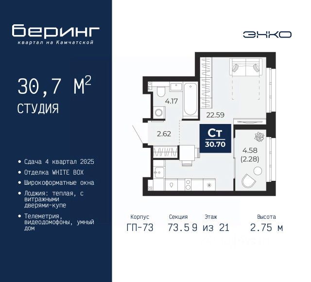 Квартира в счёт первоначального взноса по программе обмена. Информация по телефону, мы вам все подробно расскажем! Продается однокомнатная студия с предчистовой отделкой в ЖК "Республики 205" на 9 этаже. Общая площадь: 27.19 кв.м., площадь гостиной 13.8 кв.м., из которых 5 кв.м. выделено под кухонную зону. Все окна выходят на одну сторону. В квартире один балкон, один совмещенный санузел. Наличие в квартире террасы открывает возможность для обустройства дополнительной площади. Высота потолков 2.7 м. Купить квартиру можно с помощью программ покупки от застройщика Брусника: - ипотека по эксклюзивной ставке с помощью в получении положительного кредитного решения через сервис ипотечный брокер; - квартиры в рассрочку без процентов от застройщика Брусника; - обмен квартиры на новую. Получить одобрение ипотеки или рассрочку, а также осуществить обмен квартир можно онлайн. Дом монолитный, многоподъездный, переменной этажности, от 7 до 16 этажей. Квартира находится в 1-й секции высотой 9 этажей в корпусе 2. На этаже 10 квартир. В подъезде 1 грузовой лифт. Начало строительства - 1 квартал 2024 года. Окончание строительства - 1 квартал 2026 года. Оформление сделки по договору долевого участия. Район Проект расположен в границах улиц Пермякова, Энергетиков, Воровского и Республики. До центра города — 10 минут на машине. Рядом — автомобильная развязка на пересечении улиц Пермякова и Республики. В шаговой доступности есть школы, детские сады, поликлиники, крупный торговый центр, автовокзал и несколько скверов. Проект "Республики 205" — это проект комплексного развития территории, уникальный по своему наполнению. Переосмысляя бывшую территорию завода медицинского оборудования, мы создадим новое место силы — микрорайон, насыщенный деловой, развлекательной, рекреационной, игровой, образовательной и медицинской инфраструктурой. До каждого полезного сервиса здесь можно будет дойти за 15 минут. Локальными центрами "Республики 205" будут общественные пространства — скверы, парки, бульвары и площади. В границах нашего участка мы намерены разместить школу, рассчитанную на 1550 учеников, два детских сада на 300 мест и встроенный детский сад на 100 мест. В одном из цехов бывшего завода расположится креативный кластер "Кузница". Он станет площадкой для нескольких институций — галереи, лектория, книжного магазина-библиотеки, кинобара и точек креативного pop-up-ритейла. Пешеходные бульвары внутри района соединят между собой улицу ресторанов, детские и спортивные площадки, событийную площадь и летний кинотеатр. Идентификатор квартиры по базе застройщика: РСП-02-1-1. #zwtDEV