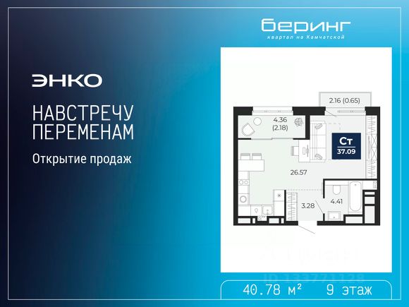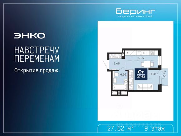 Спешите оформить бронирование по этой цене, предложение ограничено! Стоимость квартиры указана со скидкой, ваша экономия составит 554,020 руб. Звоните, мы вам все подробно расскажем. Просторная 1-комн. квартира-студия с предчистовой отделкой в ЖК "Беринг" на 9 этаже. Общая площадь: 31.85 кв.м., площадь гостиной 20.39 кв.м., из которых 5 кв.м. выделено под кухонную зону. Все окна выходят на одну сторону. В квартире одна лоджия, один совмещенный санузел. Высота потолков 2.75 м. Дом монолитный, многоподъездный, переменной этажности, от 9 до 22 этажей. Квартира находится в 1-й секции высотой 22 этажа в корпусе ГП-73. На этаже 5 квартир. В подъезде 1 пассажирский и 1 грузовой лифт. На сегодняшний день строительство завершено, дом сдан в 1 квартале 2026 года. Оформление сделки по договору купли-продажи. Подобно знаменитому исследователю, мы чувствуем себя первооткрывателями этой локации. Хотим показать новую суть места, сформировать для вас жизненный опыт, которого ещё не было. Беринг — район зелёного цвета. Беринг — район, который откроется вам с другой стороны. Впечатлит новым уровнем комфорта и качеством жизни. Беринг — открытие на карте города. Первый квартал расположен в районе Тура, в границах улиц: Камчатская Западносибирская Энтузиастов. Вокруг уже есть всё для того, чтобы ежедневная рутина была лишь частью жизни и не доставляла дискомфорта. Школы и детские сады, магазины и аптеки, поликлиника, места для семейного отдыха, пеших и велопрогулок, и даже рыбалки. Масштабное озеленение дворов — визитная карточка ЭНКО и ваш оазис спокойствия, чтобы отвлечься от повседневности. Раскидистые деревья, кустарники, травы и цветы — осталось остановиться, вдохнуть и расслабиться, глядя на эту природную красоту. Стилистика подъездов продолжает концепцию Беринга, вдохновлённого Камчаткой: сдержанный, но при этом впечатляющий дизайн соседствует с удобством и функциональностью. #Z702oT