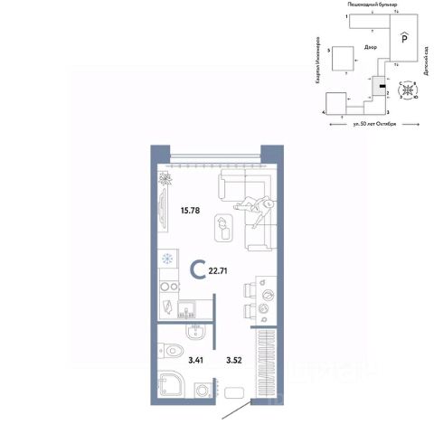 Объявление от застройщика Страна Девелопмент. Покупка квартиры защищена банком. Продается студия квартира на 9 этаже от застройщика Страна Девелопмент. Площадь квартиры 24,71 кв. м. Стоимость указана без учета акций. Флагманский проект "Сердце Сибири" расположился всего в 5 минутах езды от центра Тюмени, на пересечении улиц Харьковской — Пермякова — 50 лет Октября. По проекту в новом жилом микрорайоне будет построено 8 домов переменной этажности от 7 до 25 этажей с многоуровневыми паркингами, большим бульваром "Тропа Сибири" для пеших прогулок и новым детским садом под окнами. Дома квартального типа образуют тихие приватные дворы, закрытые от машин и случайных прохожих. Четвертый дом получил название "Квартал Строителей". Класс жилья - "Комфорт плюс". Дом будет сдан в IV квартале 2023 года. Квартиры сдаются с предчистовой отделкой. Все грязные работы выполнены: произведена разводка электричества и отопления; выполнена стяжка пола; стены выровнены "под маяк". В квартире установлены розетки, выключатели и радиаторы. На входе — надежная стальная дверь. Вам остается только выбрать материалы и начать ремонт. В "Сердце Сибири" можно воспользоваться опцией — "Ремонт от застройщика". Квартира с ремонтом избавит вас от хлопот и сэкономит время. У вас есть выбор из трех цветовых решений и возможность включить стоимость ремонта в ипотеку. После получения ключей можно завозить мебель и праздновать новоселье. Более подробная информация по телефону.