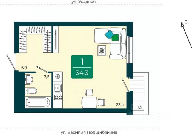 Просторная 1-комн. квартира-студия с предчистовой отделкой в ЖК "Уездные кварталы" на 9 этаже. Общая площадь: 26.8 кв.м., площадь гостиной 14.2 кв.м., из которых 5 кв.м. выделено под кухонную зону. Все окна выходят на одну сторону. В квартире один балкон, один совмещенный санузел. Высота потолков 2.7 м. Дом монолитный, многоподъездный, переменной этажности, от 7 до 17 этажей. Квартира находится в 1-й секции высотой 17 этажей в корпусе ГП-3. На этаже 7 квартир. В подъезде 1 пассажирский и 1 грузовой лифт. Окончание строительства - 1 квартал 2026 года. Оформление сделки по договору долевого участия. "Уездные кварталы" - семейный жилой комплекс комфорт-класса с авторской архитектурой и трехуровневым ландшафтным озеленением. Рядом расположены крупные транспортные развязки, которые позволяют добраться в любую точку города за 15 минут. Жилой комплекс находится в современном районе с развитой инфраструктурой, на первой линии Тюменской Слободы. Вокруг есть всё необходимое в шаговой доступности: новые детские сады и школы, остановки общественного транспорта, магазины, кафе и рестораны, поликлиника, детская школа искусств, парки и спортивный комплекс. На первых этажах квартала расположена собственная коммерческая сеть, а также свой соседский центр. Проект включает 5 домов переменной этажности с более чем 100 планировками - с террасами, французскими балконами и мастер-спальнями. Закрытые дворы оборудованы интерактивными площадками для игр, спортивными зонами и местами тихого отдыха. Вдоль жилого комплекса расположен пешеходный бульвар с сухим фонтаном, а для автомобилей предусмотрен теплый паркинг. Часть квартир можно приобрести с ремонтом, мебелью и техникой от застройщика, а расходы включить в ипотечный платеж. #2mScUc