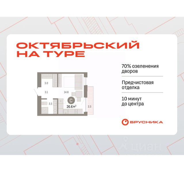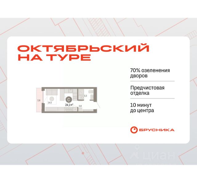 Квартира в счёт первоначального взноса по программе обмена. Студия в Октябрьском на Туре. Особенности планировки: предчистовая отделка, балкон. квартиры в нашей базе: ОКТ-10-1-1.2.2. Район Проект расположен на берегу реки, в одном из самых живописных и экологичных районов Тюмени. За последние годы облик района изменился. По соседству с индивидуальной застройкой выросли многоквартирные дома. При проектировании "Октябрьского на Туре" нашей приоритетной задачей стало сохранение природного ландшафта: мы постарались деликатно вписать в него современную архитектуру. Квартал удачно расположен с точки зрения дорожной инфраструктуры. На автомобиле путь до центра города составит 15 минут. Добраться до набережной и главных тюменских достопримечательностей можно и на общественном транспорте. В пешей доступности находится автобусная остановка. Проект По мастер-плану здесь будет восемь домов. Ядро застройки составляют замкнутые кварталы переменной этажности. Их высотность понижается по мере приближения к реке. На углах участка мы разместили башни-доминанты. Одной из достопримечательностей квартала станет парк на Туре — здесь появится зеленая зона протяженностью около 6 километров для пеших и велопрогулок. Смысловая ось квартала — широкая главная улица с высаженными вдоль неё высокими деревьями. Они создают тень и работают как шумо- и пылезащитные экраны. Это место сосредоточения основных пешеходных и транспортных потоков, на сторону которых мы ориентировали большинство коммерческих помещений. Отсюда жители могут свернуть на тихие соседские улицы и попасть на внутриквартальную площадь — ещё одну точку притяжения.Квартира в счёт первоначального взноса по программе обмена. #25du8B