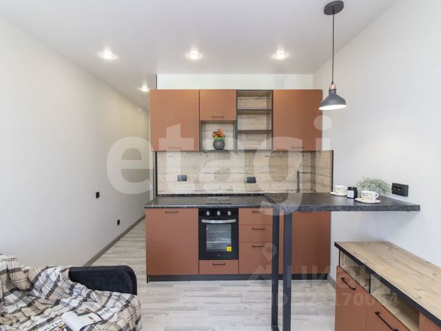 1-комн. студия от застройщика с предчистовой отделкой в ЖК "Республики 205" на 3 этаже. Общая площадь: 23.25 кв.м., площадь гостиной 14.5 кв.м., из которых 5 кв.м. выделено под кухонную зону. Все окна выходят на одну сторону. В квартире один балкон, один совмещенный санузел. Высота потолков 2.7 м.