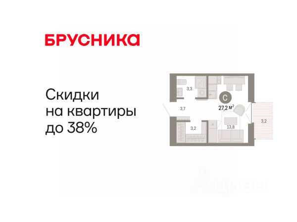 1-комн. студия с предчистовой отделкой в ЖК "Республики 205" на 9 этаже. Общая площадь: 27.19 кв.м., площадь гостиной 13.8 кв.м., из которых 5 кв.м. выделено под кухонную зону. Все окна выходят на одну сторону. В квартире один балкон, один совмещенный санузел. Терраса представляет собой роскошную зону отдыха для проведение вечеров в кругу семьи и друзей или организация вечеринок. Высота потолков 2.7 м. Купить квартиру можно с помощью программ покупки от застройщика Брусника: - ипотека по эксклюзивной ставке с помощью в получении положительного кредитного решения через сервис ипотечный брокер; - квартиры в рассрочку без процентов от застройщика Брусника; - обмен квартиры на новую. Получить одобрение ипотеки или рассрочку, а также осуществить обмен квартир можно онлайн. Дом монолитный, многоподъездный, переменной этажности, от 7 до 16 этажей. Квартира находится в 1-й секции высотой 9 этажей в корпусе 2. На этаже 10 квартир. В подъезде 1 грузовой лифт. Начало строительства - 1 квартал 2024 года. Окончание строительства - 1 квартал 2026 года. Оформление сделки по договору долевого участия. Район Проект расположен в границах улиц Пермякова, Энергетиков, Воровского и Республики. До центра города — 10 минут на машине. Рядом — автомобильная развязка на пересечении улиц Пермякова и Республики. В шаговой доступности есть школы, детские сады, поликлиники, крупный торговый центр, автовокзал и несколько скверов. Проект "Республики 205" — это проект комплексного развития территории, уникальный по своему наполнению. Переосмысляя бывшую территорию завода медицинского оборудования, мы создадим новое место силы — микрорайон, насыщенный деловой, развлекательной, рекреационной, игровой, образовательной и медицинской инфраструктурой. До каждого полезного сервиса здесь можно будет дойти за 15 минут. Локальными центрами "Республики 205" будут общественные пространства — скверы, парки, бульвары и площади. В границах нашего участка мы намерены разместить школу, рассчитанную на 1550 учеников, два детских сада на 300 мест и встроенный детский сад на 100 мест. В одном из цехов бывшего завода расположится креативный кластер "Кузница". Он станет площадкой для нескольких институций — галереи, лектория, книжного магазина-библиотеки, кинобара и точек креативного pop-up-ритейла. Пешеходные бульвары внутри района соединят между собой улицу ресторанов, детские и спортивные площадки, событийную площадь и летний кинотеатр. Идентификатор квартиры по базе застройщика: РСП-02-1-1. #zwTdE8