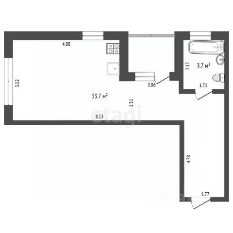 Студия в ЖК "Крылья". Адрес: г. Тюмень, с. Горьковка, ул. Светлая 10к1, этаж 1, номер помещения 51 Площадь квартиры 26.51 м2 . Высота потолка 2,7 м. Описание квартиры: Просторная кухня-гостиная зонирована под приготовление пищи, рабочее место и зону отдых. Большая ванная комната 4,01 м². Ниша под шкафов для хранения сезонных вещей.