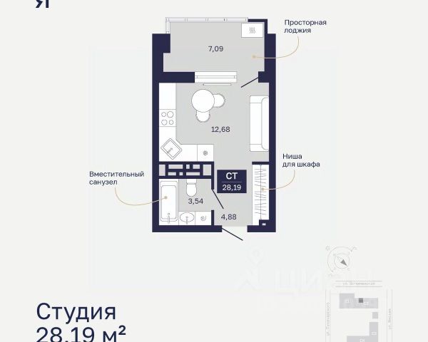 Уютная студия обладает правильной геометрией, что позволяет максимально эффективно использовать пространство. Просторная кухня-гостиная становится идеальным местом для совместного времяпрепровождения с друзьями или семейных вечеров. Здесь легко расположить все необходимое: от обеденной зоны до комфортного места для отдыха, создавая атмосферу уюта и гармонии. Вместительная ванная комната площадью предлагает все удобства для комфортного использования. Коридор с предусмотренным местом под шкаф добавляет функциональности и удобства, позволяя организовать хранение вещей без ущерба для эстетики. Это решение помогает поддерживать порядок и создает уютную атмосферу в студии. Эта квартира идеально подходит для тех, кто ценит стильный, современный дизайн и хочет жить в функциональном пространстве, где каждый элемент продуман до мелочей