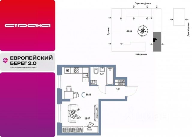 Объявление от застройщика Страна Девелопмент. Покупка квартиры защищена банком. Продается 1комнатная квартира на 7 этаже от застройщика Страна Девелопмент. Площадь квартиры 20,84 кв. м. Стоимость указана без учета акций. Европейский берег 2.0. — это продолжение легендарного жилого комплекса Европейский берег. Он включает все, что нужно для жизни, и даже больше. Этот квартал для тех, кто не готов тратить время на ненужное, жертвовать одним ради другого. Для тех, кто хочет получить все и сразу. Именно поэтому генеральная идея проекта — жилой квартал все включено. Все преимущества включены. Никаких исключений. ПРЕИМУЩЕСТВА Разнообразие планировок: от классических до квартир с мастер-спальней и террасами. Подземный паркинг с кладовыми, охраной и видеонаблюдением 24/7. Ремонт от застройщика: 5 вариантов на выбор. Закрытый двор с площадками и зонами отдыха: мост-акведук, тренажёры, лабиринты, гамаки и шезлонги. ОТДЕЛКА Базовая отделка или готовый ремонт от застройщика. В базовой отделке все черновые работы выполнены, подведены коммуникации, стены оштукатурены под маяк. В ремонт от застройщика входит 5 вариантов отделки, уже включено всё необходимое: от сантехники до кондиционера. СПОСОБЫ ПОКУПКИ Сотрудники "Страны Девелопмент" будут сопровождать вас на каждом этапе сделки, помогут получить одобрение по ипотеке или снизить ежемесячный платеж. - ипотека - материнский капитал - 100% оплата наличными - рассрочка - обмен — это выкуп вашей старой квартиры и зачисление полученных денежных средств в счет стоимости новой квартиры или в качестве первоначального взноса по ипотеке.