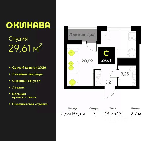 Квартира в счёт первоначального взноса по программе обмена. По всем вопросам обращайтесь в офис продаж, наши менеджеры вам все расскажут! Продается 1-комн. студия от застройщика с предчистовой отделкой в ЖК "Зарека" на 16 этаже. Общая площадь: 23.14 кв.м. Высота потолков 2.7 м. Дом монолитный, многоподъездный, переменной этажности, от 6 до 16 этажей. Квартира находится в 1-й секции высотой 16 этажей в корпусе 5-2. На этаже 8 квартир. В подъезде 1 пассажирский и 1 грузовой лифт. Окончание строительства - 4 квартал 2026 года. Оформление сделки по договору долевого участия. Продаётся с паркингом и кладовой. Студия в жилом районе "Зарека". Особенности планировки: лоджия, предчистовая отделка. квартиры в нашей базе: ЗРК05.2-Ж1.16.3. Проект На планировочную структуру "Зареки" повлияла близость к автомобильному мосту Челюскинцев. Мы расположили жилые здания так, чтобы они постепенно удалялись от проезжей части. Приём напоминает лесенку: чем сильнее мост возвышается над участком застройки, тем дальше по отношению к нему стоят дома. Этот ступенчатый сдвиг позволил нам сформировать буфер между кварталами и оживлённой магистралью. Мы намерены высадить здесь высокие деревья и создать дополнительную защиту от дорожных шума и пыли. В границах нашего участка мы намерены разместить школу и два встроенных детских сада на 135 и 150 мест. Общественные пространства С севера на юг территорию будет пронизывать пешеходный бульвар. Мы мыслим это общественное пространство как главный центр притяжения. На нём будут сосредоточены основные детские игровые и спортивные зоны, места для встреч и спокойного отдыха. Он также сыграет роль мостика, ведущего к другим нашим проектам — "Европейскому кварталу" и "Дому у озера". Одна из базовых идей мастер-плана касается береговой линии. Сегодня озеленение этой территории носит стихииныи характер, а прямому доступу к Туре препятствует дамба. Мы хотим благоустроить пространства у воды и открыть их для людей. Архитекторы спроектировали систему многоярусных троп и спусков к реке, смотровые площадки и места для активного отдыха и пикников. #2mgOZO