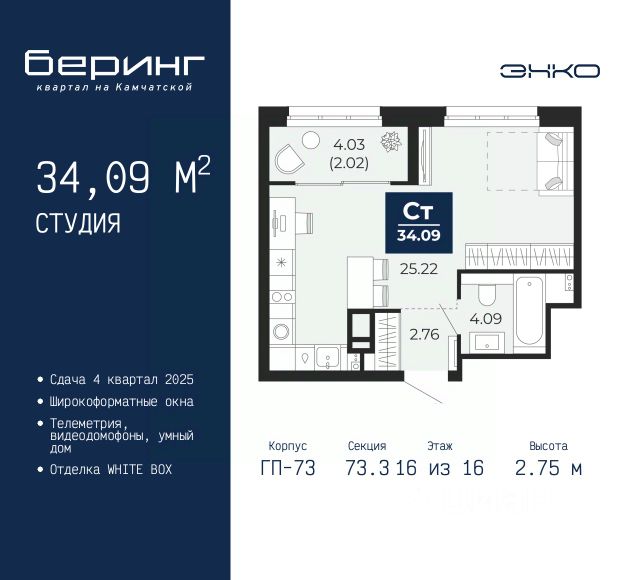 Просторная 1-комн. квартира-студия в ЖК "Беринг" на 14 этаже. Квартира без отделки, после получения ключей можно делать ремонт. Общая площадь: 37 кв.м., площадь гостиной 26.15 кв.м., из которых 5 кв.м. выделено под кухонную зону. Все окна выходят на одну сторону. В квартире один балкон, один совмещенный санузел. Высота потолков 2.75 м. Дом монолитный, многоподъездный, переменной этажности, от 9 до 21 этажей. Квартира находится в 4-й секции высотой 14 этажей в корпусе ГП-74. На этаже 7 квартир. В подъезде 1 пассажирский и 1 грузовой лифт. Окончание строительства - 4 квартал 2025 года. Оформление сделки по договору долевого участия. Подобно знаменитому исследователю, мы чувствуем себя первооткрывателями этой локации. Хотим показать новую суть места, сформировать для вас жизненный опыт, которого ещё не было. Беринг — район зелёного цвета. Беринг — район, который откроется вам с другой стороны. Впечатлит новым уровнем комфорта и качеством жизни. Беринг — открытие на карте города. Первый квартал расположен в районе Тура, в границах улиц: Камчатская Западносибирская Энтузиастов. Вокруг уже есть всё для того, чтобы ежедневная рутина была лишь частью жизни и не доставляла дискомфорта. Школы и детские сады, магазины и аптеки, поликлиника, места для семейного отдыха, пеших и велопрогулок, и даже рыбалки. Масштабное озеленение дворов — визитная карточка ЭНКО и ваш оазис спокойствия, чтобы отвлечься от повседневности. Раскидистые деревья, кустарники, травы и цветы — осталось остановиться, вдохнуть и расслабиться, глядя на эту природную красоту. Стилистика подъездов продолжает концепцию Беринга, вдохновлённого Камчаткой: сдержанный, но при этом впечатляющий дизайн соседствует с удобством и функциональностью. #zu562T