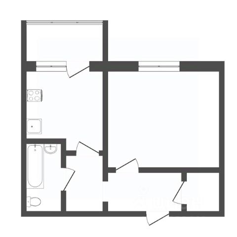 Современный ремонт: на стенах — обои по всей площади, установлены хорошие межкомнатные двери и натяжные потолки с точечными светильниками, на полу ламинат, санузел в плитке. Вход в комнату из кухни через прямоугольную арку, а на кухню- через прямоугольную полуарку.