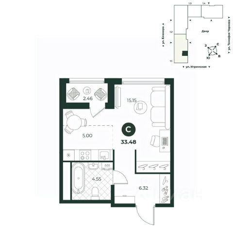 Современная квартира - студия, с евро ремонтом. Натяжные потолки, Пол - линолеум.Светлые обои. Балкон застеклен. В квартире совмещенный санузел, оборудованный всем необходимым. При продаже, мебель и бытовая техника остаются частично, Забирают: холодильник, микроволновку, телевизор, электроплиту. Из окон красивый вид на собор. Открытая парковка. Дом расположен вдали от дороги. Номер объекта: #1/555859/22044