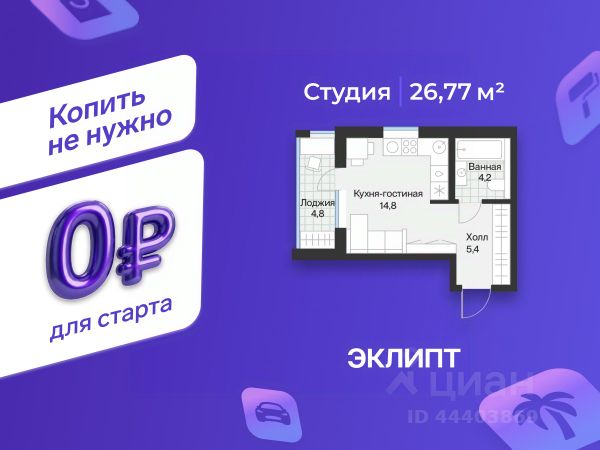 Квартира из специального ассортимента с лёгким стартом. Студия с лоджией. Она с панорамным остеклением в пол. Кухню можете разместить в нише и отгородить спальное место перегородками. Внутри готова предчистовая отделка: стены оштукатурены и выровнены по общему уровню, на полу слой цементно-песчаного раствора с дополнительным гидроизоляционным слоем в ванной. Проведена электрика и готовы розетки с выключателями. А ещё установлены сейф-двери и счётчики с телеметрией. Дворы — закрыты от машин. Внутри: нейродинамические детские площадки, шезлонги для отдыха и перголы с гирляндами. В районе развивается инфраструктура: появится досуг-маркет с образовательным центром, аптеками и пунктами выдачи. Там откроются магазины и кафе с гастротеррасами. Рядом с кварталом место под школу. Способы покупки: — ипотечные программы — обмен вашего жилья на новую квартиру — дистанционная покупка — рассрочка Узнать дополнительную информацию и записаться на встречу в офисе продаж можно по номеру, указанному в объявлении.