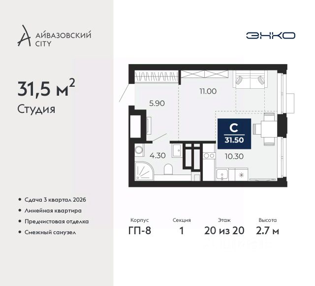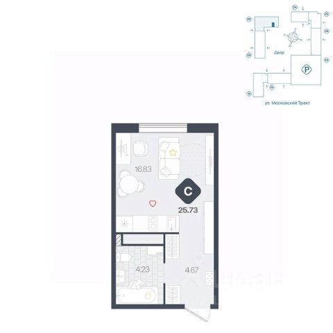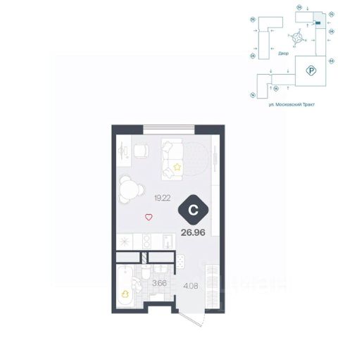 Продаётся квартира площадью 24.7 м2 в жилом комплексе "Айрис". Квартира находится на 25 этаже, жилая площадь квартиры 10.2 м2, площадь кухни-ниши — 6 м2 Срок сдачи — III кв. 2027 "Айрис" — Смарт-квартал для активной и комфортной жизни "Айрис" расположен в новом экологически чистом районе Комарово Парк — локации без промышленного прошлого,в окружении трёх зелёных парков, до которых можно дойти за 10 минут. Здесь свежий воздух, природа и тишина сочетаются с городским комфортом. Рядом вся ключевая инфраструктура: ТРЦ "Колумб" и "Кристалл", Гимназия 4, Академия спорта, детские сады 60 и 95. Смарт-архитектура обеспечивает хорошие виды и естественное освещение. Разновысотная застройка формирует ощущение открытого пространства, а панорамные окна наполняют квартиры светом. Дворы без машин — безопасные игровые и спортивные зоны, зелёные пространства, места для отдыха и спорта. Большой выбор планировок — от студий до трёхкомнатных квартир, а также редкие форматы: террасы, зимние сады и сити-хаусы. Дополнительные удобства — кладовые на этажах, лаундж-парадные, два наземных паркинга. Продуманная транспортная доступность Благодаря продуманной транспортной доступности "Айрис" одинаково удобен и для автомобилистов, и для тех, кто пользуется общественным транспортом. Район остаётся тихим, при этом сохраняется связь с основными направлениями города: • 2025 минут до центра Тюмени • 67 минут до объездной дороги • 5 минут до Московского тракта Смарт-пространство для жизни без компромиссов "Айрис" предлагает продуманные пространства, которые поддерживают комфортный и активный образ жизни. На крышах паркингов размещены лайфстайл-зоны: площадки для тренировок, кинотеатр под открытым небом, зелёные террасы для йоги и отдыха — всё, что нужно для активной городской жизни рядом с домом. Максимум света и воздуха в каждой квартире Пространственные решения усиливают ощущение простора: • панорамные окна высотой 1,652,4 м; • витражные балконы и лоджии, расширяющие визуальные границы; • потолки от 2,72 м на типовых этажах до 4,62 м на первом. Многофункциональные крыши паркингов: новый уровень городской инфраструктуры Жители "Айрис" могут заниматься спортом, отдыхать и встречаться на свежем воздухе. — прямо на крышах паркингов. Здесь расположены: • воркаут-зона с тренажёрами и цифровыми программами тренировок — поддерживать форму можно рядом с домом; • кинотеатр под открытым небом, который летом становится центром вечерней жизни квартала; • зелёные террасы — тихие места для отдыха, чтения и встреч; • йога-терраса, где удобнее всего заниматься на рассвете и закате.