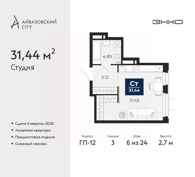 Продается однокомнатная квартира-студия от застройщика в ЖК "Беринг" на 3 этаже. Квартира без отделки, полностью готова к ремонту. Общая площадь: 29.02 кв.м., площадь гостиной 15.14 кв.м., из которых 5 кв.м. выделено под кухонную зону. Все окна выходят на одну сторону. В квартире один совмещенный санузел. Высота потолков 2.75 м. Дом монолитный, многоподъездный, переменной этажности, от 9 до 21 этажей. Квартира находится в 74.5-й секции высотой 21 этаж в корпусе ГП-74. На этаже 7 квартир. В подъезде 1 пассажирский и 1 грузовой лифт. Окончание строительства - 4 квартал 2025 года. Оформление сделки по договору долевого участия. Подобно знаменитому исследователю, мы чувствуем себя первооткрывателями этой локации. Хотим показать новую суть места, сформировать для вас жизненный опыт, которого ещё не было. Беринг — район зелёного цвета. Беринг — район, который откроется вам с другой стороны. Впечатлит новым уровнем комфорта и качеством жизни. Беринг — открытие на карте города. Первый квартал расположен в районе Тура, в границах улиц: Камчатская Западносибирская Энтузиастов. Вокруг уже есть всё для того, чтобы ежедневная рутина была лишь частью жизни и не доставляла дискомфорта. Школы и детские сады, магазины и аптеки, поликлиника, места для семейного отдыха, пеших и велопрогулок, и даже рыбалки. Масштабное озеленение дворов — визитная карточка ЭНКО и ваш оазис спокойствия, чтобы отвлечься от повседневности. Раскидистые деревья, кустарники, травы и цветы — осталось остановиться, вдохнуть и расслабиться, глядя на эту природную красоту. Стилистика подъездов продолжает концепцию Беринга, вдохновлённого Камчаткой: сдержанный, но при этом впечатляющий дизайн соседствует с удобством и функциональностью. #zU54al Купить квартиру-студию в новостройке без отделки в Тюмени.