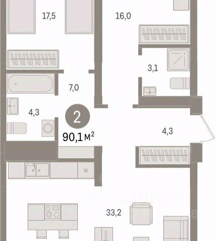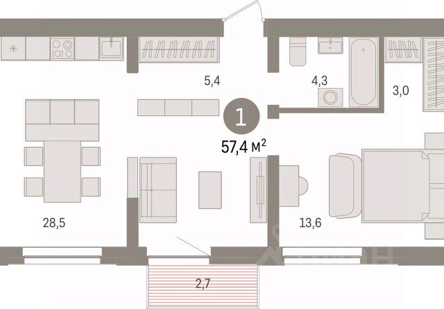 Просторная квартира 42.8кв.метра с удобной, гармоничной планировкой : кухня-гостиная 16.1кв.м))) с выходом на балкон 3.5 кв.м., спальня 13.3 кв., огромный санузел 4.6 кв.м., прихожая 5.3кв.м с нишей под большой шкаф по очень привлекательной цене!