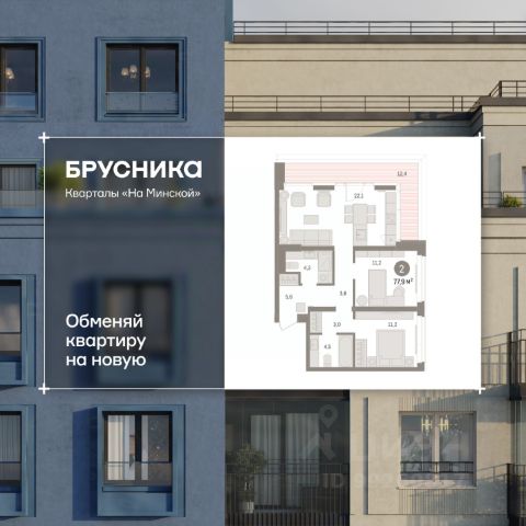 2-комн. квартира с предчистовой отделкой в Кварталы "На Минской" на 3 этаже. Общая площадь: 77.86 кв.м., жилая: 22.4 кв.м., площадь просторной кухни-гостиной: 22.1 кв.м. Угловая квартира, окна oбecпeчивaют paвнoмepнoe ocвeщeниe в тeчeниe дня. В квартире один балкон, два совмещенных санузла. Наличие террасы в квартире открывает возможность для создания зон отдыха в кругу семьи и друзей. Высота потолков 2.7 м.