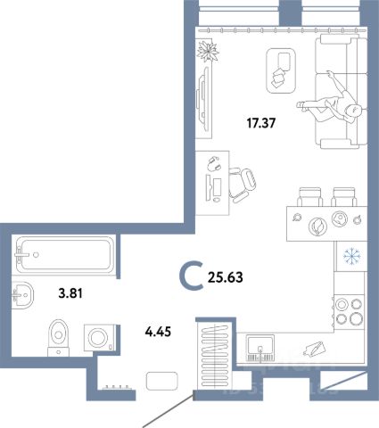 Студия в Октябрьском на Туре. Особенности планировки: предчистовая отделка, тёплая лоджия. квартиры в нашей базе: КО-07.1-2-2.16.3. Район Проект расположен на берегу реки, в одном из самых живописных и экологичных районов Тюмени. За последние годы облик района изменился. По соседству с индивидуальной застройкой выросли многоквартирные дома. При проектировании "Октябрьского на Туре" нашей приоритетной задачей стало сохранение природного ландшафта: мы постарались деликатно вписать в него современную архитектуру. Квартал удачно расположен с точки зрения дорожной инфраструктуры. На автомобиле путь до центра города составит 15 минут. Добраться до набережной и главных тюменских достопримечательностей можно и на общественном транспорте. В пешей доступности находится автобусная остановка. Проект По мастер-плану здесь будет восемь домов. Ядро застройки составляют замкнутые кварталы переменной этажности. Их высотность понижается по мере приближения к реке. На углах участка мы разместили башни-доминанты. Одной из достопримечательностей квартала станет парк на Туре — здесь появится зеленая зона протяженностью около 6 километров для пеших и велопрогулок. Смысловая ось квартала — широкая главная улица с высаженными вдоль неё высокими деревьями. Они создают тень и работают как шумо- и пылезащитные экраны. Это место сосредоточения основных пешеходных и транспортных потоков, на сторону которых мы ориентировали большинство коммерческих помещений. Отсюда жители могут свернуть на тихие соседские улицы и попасть на внутриквартальную площадь — ещё одну точку притяжения. #ZIWavd квартира-студия в готовой новостройке в округе Калининский в городе Тюмень.