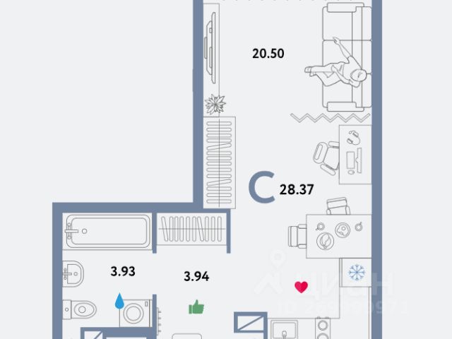 Продается однокомнатная студия с предчистовой отделкой в ЖК "Республики 205" на 9 этаже. Общая площадь: 27.19 кв.м., площадь гостиной 13.8 кв.м., из которых 5 кв.м. выделено под кухонную зону. Все окна выходят на одну сторону. В квартире один балкон, один совмещенный санузел. Терраса представляет собой роскошную зону отдыха, где вы на свой вкус можете создать атмосферу комфорта и уюта. Высота потолков 2.7 м. Купить квартиру можно с помощью программ покупки от застройщика Брусника: - ипотека по эксклюзивной ставке с помощью в получении положительного кредитного решения через сервис ипотечный брокер; - квартиры в рассрочку без процентов от застройщика Брусника; - обмен квартиры на новую. Получить одобрение ипотеки или рассрочку, а также осуществить обмен квартир можно онлайн. Дом монолитный, многоподъездный, переменной этажности, от 7 до 16 этажей. Квартира находится в 1-й секции высотой 9 этажей в корпусе 2. На этаже 10 квартир. В подъезде 1 грузовой лифт. Начало строительства - 1 квартал 2024 года. Окончание строительства - 1 квартал 2026 года. Оформление сделки по договору долевого участия. Район Проект расположен в границах улиц Пермякова, Энергетиков, Воровского и Республики. До центра города — 10 минут на машине. Рядом — автомобильная развязка на пересечении улиц Пермякова и Республики. В шаговой доступности есть школы, детские сады, поликлиники, крупный торговый центр, автовокзал и несколько скверов. Проект "Республики 205" — это проект комплексного развития территории, уникальный по своему наполнению. Переосмысляя бывшую территорию завода медицинского оборудования, мы создадим новое место силы — микрорайон, насыщенный деловой, развлекательной, рекреационной, игровой, образовательной и медицинской инфраструктурой. До каждого полезного сервиса здесь можно будет дойти за 15 минут. Локальными центрами "Республики 205" будут общественные пространства — скверы, парки, бульвары и площади. В границах нашего участка мы намерены разместить школу, рассчитанную на 1550 учеников, два детских сада на 300 мест и встроенный детский сад на 100 мест. В одном из цехов бывшего завода расположится креативный кластер "Кузница". Он станет площадкой для нескольких институций — галереи, лектория, книжного магазина-библиотеки, кинобара и точек креативного pop-up-ритейла. Пешеходные бульвары внутри района соединят между собой улицу ресторанов, детские и спортивные площадки, событийную площадь и летний кинотеатр. Идентификатор квартиры по базе застройщика: РСП-02-1-1. #ZWtdEV Квартира-студия в ипотеку в новостройке в Тюмени.