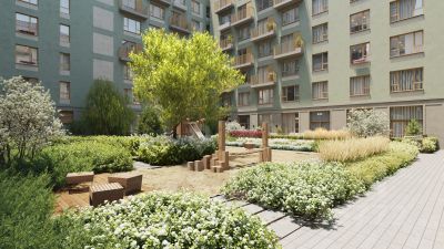 Пешеходные бульвары внутри района соединят между собой улицу ресторанов, детские и спортивные площадки, событийную площадь и летний кинотеатр.