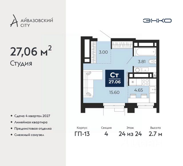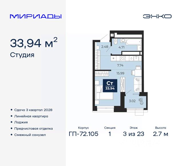 Идентификатор квартиры по базе застройщика: МЕД01-01-5-5. #2MgUsA Продам квартиру-студию с отделкой от застройщика в Тюмени.