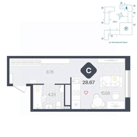 Однокомнатная квартира с предчистовой отделкой в ЖК "Прео" на 6 этаже. Общая площадь: 41.23 кв.м., жилая: 17.67 кв.м., площадь просторной кухни-столовой: 12.3 кв.м. Все окна выходят на одну сторону. В квартире один балкон, один совмещенный санузел. Высота потолков 2.7 м.