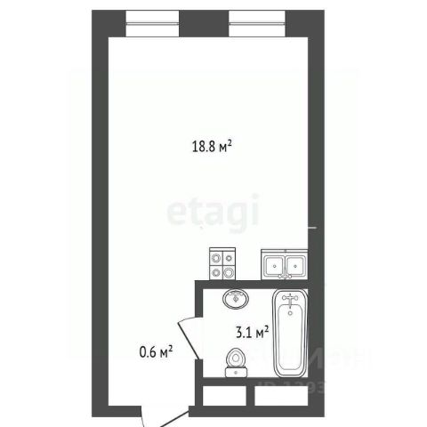 1-комн. студия от застройщика с предчистовой отделкой в ЖК "Республики 205" на 6 этаже. Общая площадь: 19.82 кв.м., площадь гостиной 10.1 кв.м., из которых 5 кв.м. выделено под кухонную зону. Все окна выходят на одну сторону. В квартире один балкон, один совмещенный санузел. Высота потолков 2.6 м.